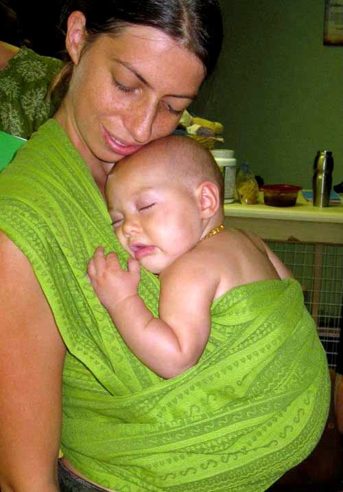 Instead of drowning under the demands, my wrap was like a sea-worthy vessel, allowing me to float over the waves comfortably. I found myself more at peace, more calm, and more confident. This gave me the space to discover that I did know how to care for my baby. I knew when she was too hot or too cold. I recognized the signs of hunger. I could tell when she was crying for a diaper change, and I could tell when she was teething. This last was particularly helpful because once I figured out my baby just didn’t feel good, I stopped desperately (and pointlessly) trying to figure out what’s wrong. Knowing that what she needed most was my presence, comfort sucking, and the soothing motion as I walked, allowed me to relax into providing that, and to be confident in continuing to provide that even if it didn’t stop her crying.