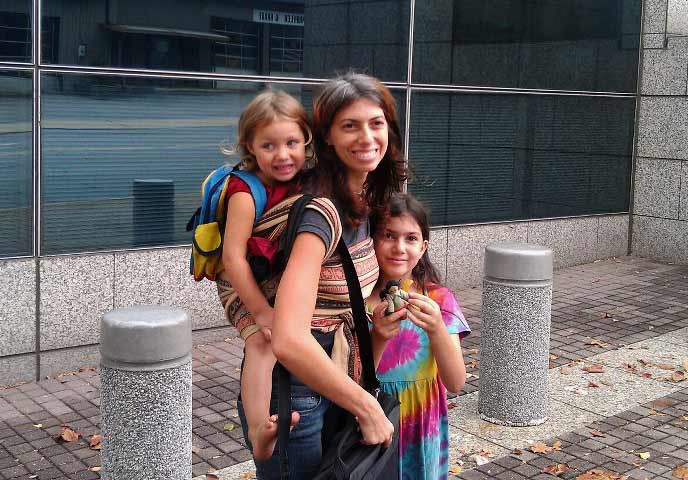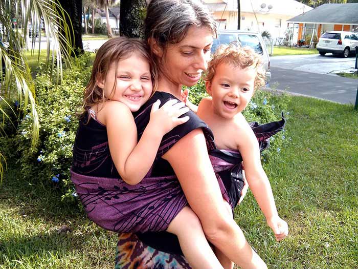 The times that are most difficult for our babies are most difficult for us, too, but the wonderful flip-side of that is that wrapping, which benefits your baby so greatly, benefits you just as much. Here are a few of the letters I’ve received from moms, and in each one you can see that the benefits were shared by mother and baby: “I want to thank you for changing my life as a new mom 3.5 years ago. I found your website and bought an Ellaroo [wrap] and enjoyed the infancy of my then newborn twins. Even my son who was quite colicky never failed to be soothed and fall asleep in the . . . front wrap cross carry.” Karen – mother of 3 “I just wanted to say thank you! I learned how to carry my baby through your videos and it has changed my life. Not only is my baby happier in the day and sleeping better at night, it saved me from my postpartum depression. I got my life back – and even better! Words can not express…” Sophia – in San Diego, carrying a 2yr old and a 4 mo old “I absolutely love my wrap- it has saved me over and over again. My new baby is 4 months old now and whenever she is fussy it she goes right into the wrap and all is good! She always settles down.” Marjorie