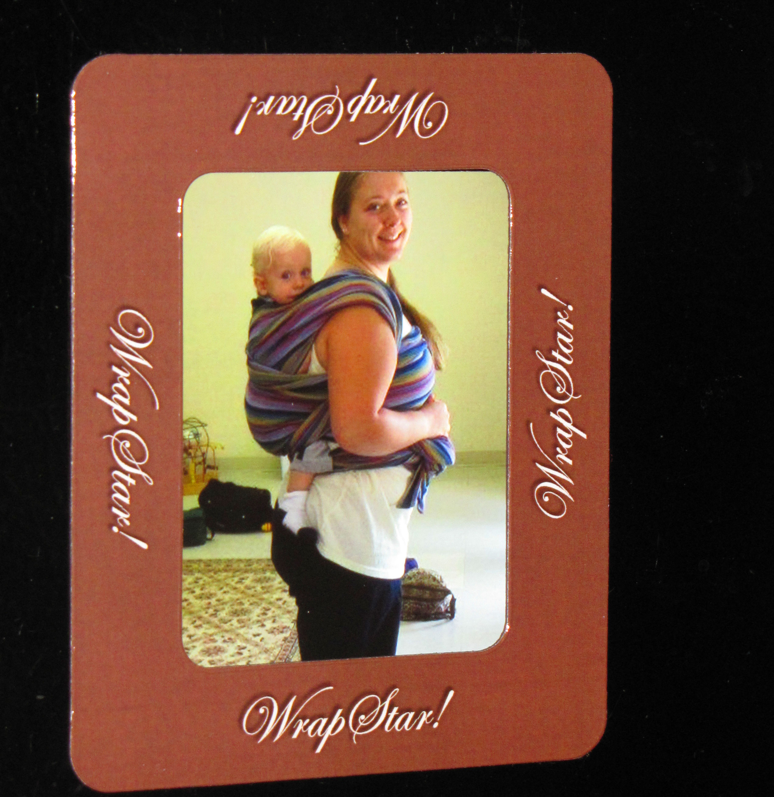 - A cool magnet: pop out the inner magnet and the outer portion becomes a magnetic picture frame on your fridge. Print a photo of you (or your husband, or your mom) wrapping your baby and voila–instant WrapStar!